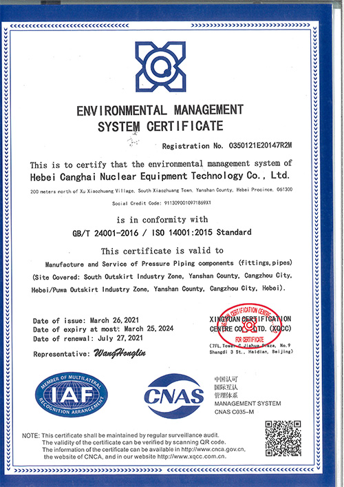 河北滄海環(huán)境管理體系認(rèn)證證書(英文)